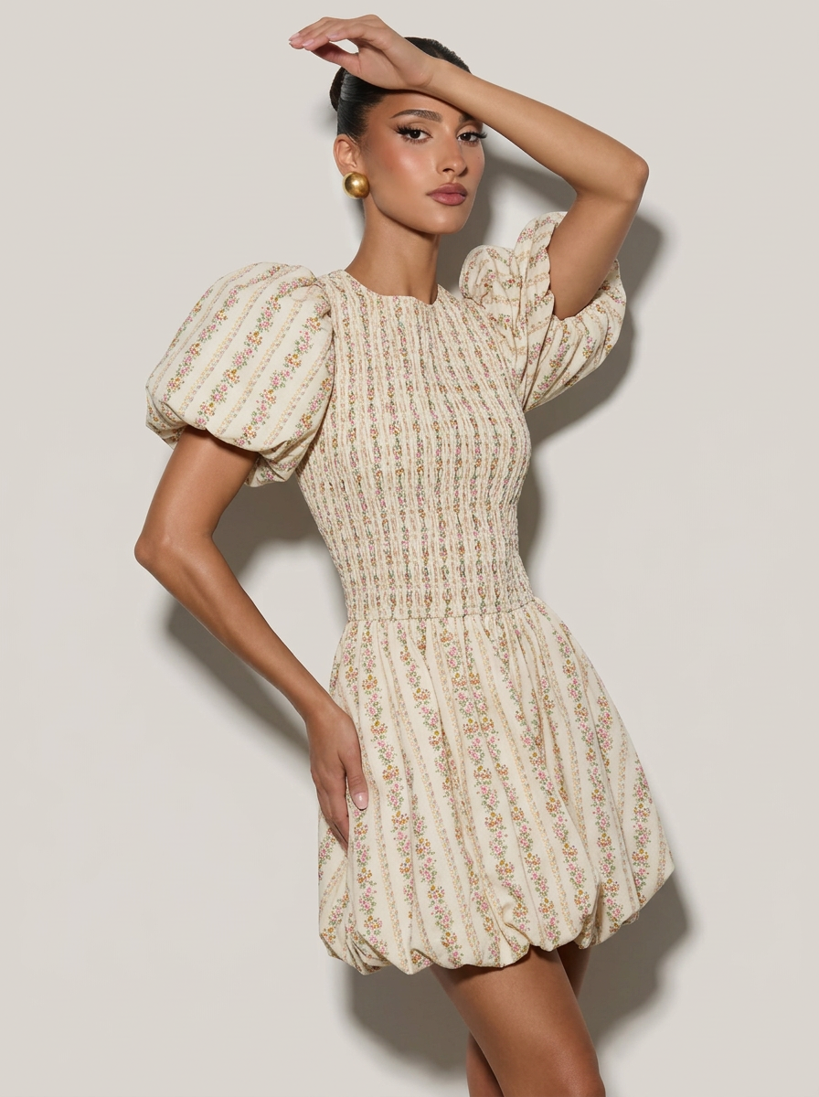 This floral bow tie attachable puff sleeves dress showcases a lovely floral print, a sweet bow tie neck, and unique detachable puff sleeves for versatile styling. Crafted from soft and lightweight material, it delivers all-day comfort while creating a romantic, feminine, and eye-catching silhouette for any special occasion.