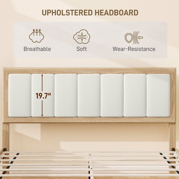 - - Upholstered headboard enhances comfort and adds elegance