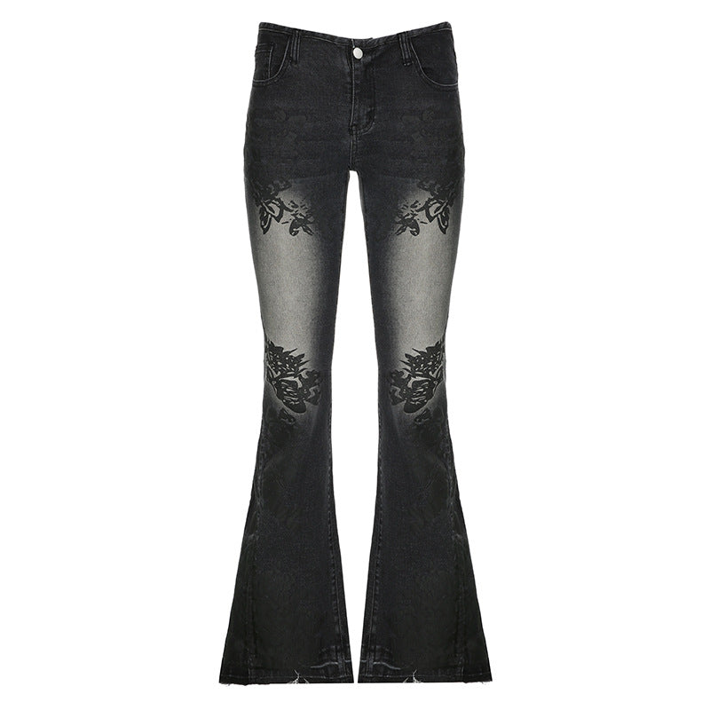 Printed Worn Jeans Slimming Washed Women